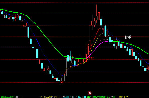 通达信EXPMA主图持股持币买卖指标公式实例图解: