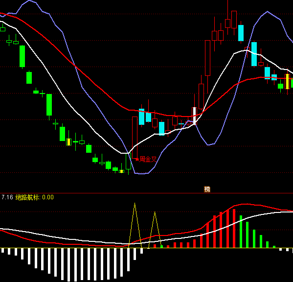 绝路航标:IF(CROSS(B,VAR22) AND B<20,25,0);