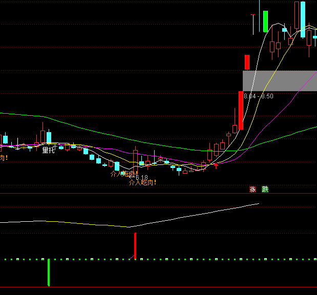 买进:(LLV(A8,2)=LLV(A8,7) AND COUNT(A8<0,2) AND CROSS(A8,MA(A8,2))) AND REF(DOWN,1)<REF(DOWN,2) AND UP>REF(DOWN,1);