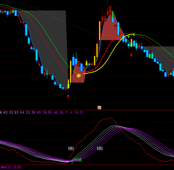 DRAWTEXT(CROSS(AA, A5) AND REF(AA,1)<34,REF(AA,1),'小'), COLOR00FF00;
