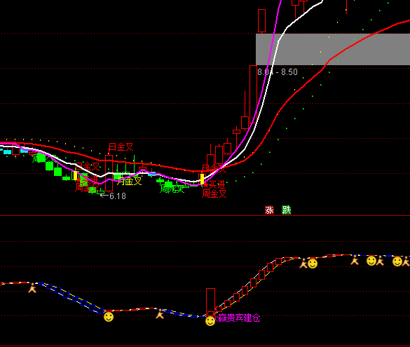 X2:DRAWTEXT(CROSS(运钞专列,20) AND 和谐一号<运钞专列,运钞专列-5,'众赢贵宾建仓 '),
