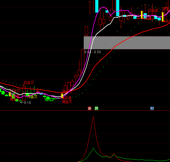 主流资金: IF(Z_J3>0.1,Z_J4,0)*5,COLORGREEN;