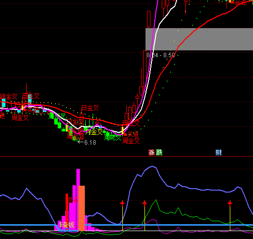 出手就赢:IF(DK1>7 AND REF(DK1,1)<0 AND (DK1-REF(DK1,1))>9,50,0), STICK,