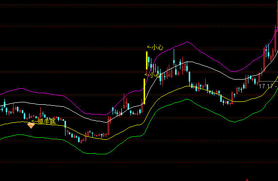 DRAWTEXT (XG,HIGH*1.02,'<-小心'),COLORYELLOW;