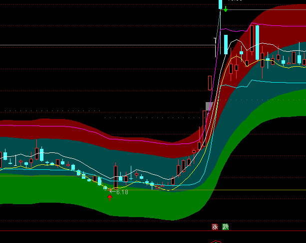 通达信薛斯双通道箱体叠加主图指标公式实例图解: