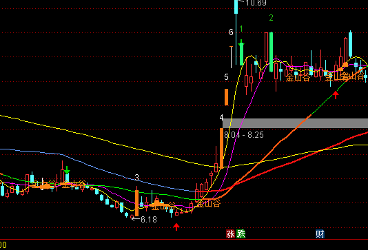 DRAWTEXT(COUNT(CROSS(MA5,MA10),21)>1 AND CROSS(MA5,MA10),L,'金山谷'),COLOR1788FF;
