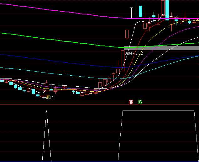 B4:=BARSLAST(CROSS(GJTJ8,GJTJ5))<2 AND GJTJ5>GJTJ8;