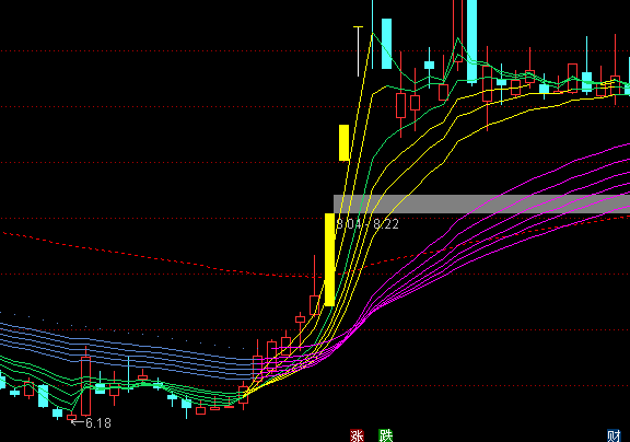 通达信断裂的红飘带主图看趋势指标公式实例图解: