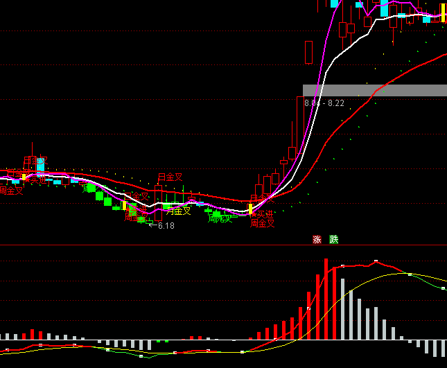 强:IF(DIF1>=DEA1,DIF1,DRAWNULL),COLORRED,LINETHICK2;