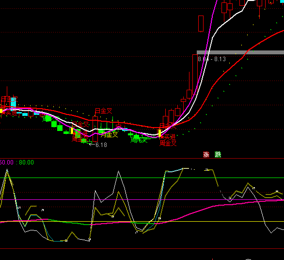 通达信一桩系四马趋势买卖指标公式实例图解: