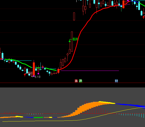 短线出局:IF(DIFF<REF(DIFF,1) AND DEA>REF(DEA,1),DIFF,DRAWNULL),COLORYELLOW,LINETHICK4;