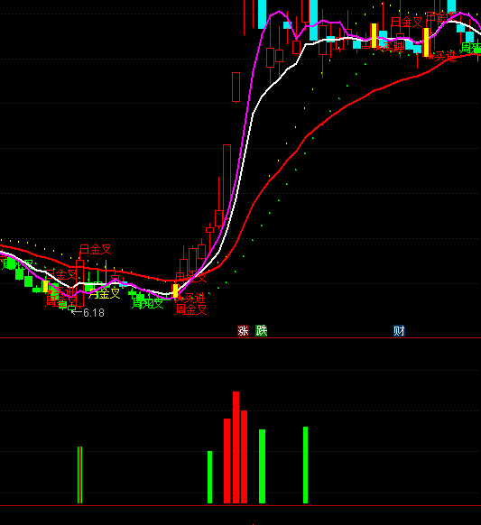 STICKLINE(C/REF(C,1)<0.901,VZ,(0-HLMN3)*HLMN2/HLMN4+HLMN1,2,0),COLORGREEN;