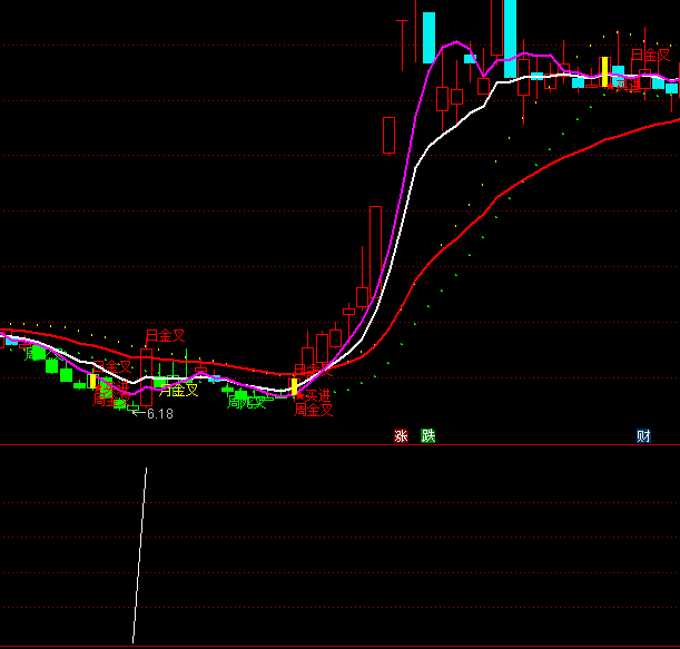 买进:(LLV(A8,2)=LLV(A8,7) AND COUNT(A8<0,2) AND CROSS(A8,MA(A8,2))) AND REF(DOWN,1)<REF(DOWN,2) AND UP>REF(DOWN,1);