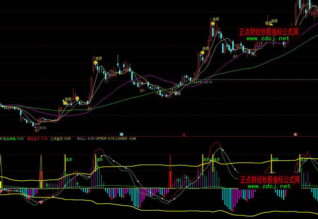 UPPER:BOLL+2*STD(MACD,N),COLORYELLOW,LINETHICK2;