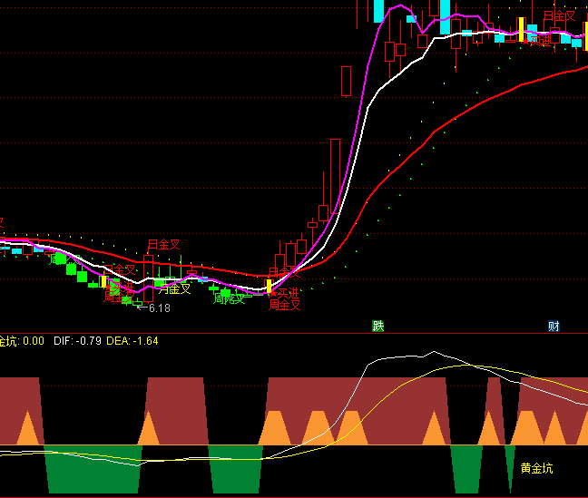 DRAWTEXT(黄金坑,XZ3/2,'黄金坑'),COLORYELLOW;