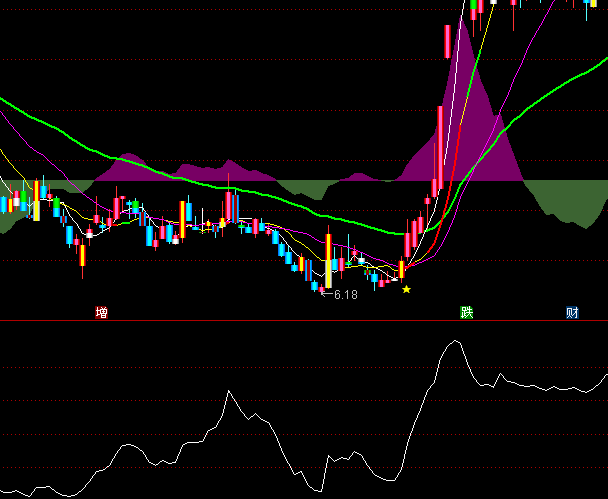 通达信主力趋势线指标公式 通达信主力趋势线指标公式: 主力趋势线:EMA(100*(C-LLV(LOW,34))/(HHV(H,34)-LLV(LOW,34)),3); 通达信主力趋势线指标公式实例图解: 通达信主力趋势线指标公式