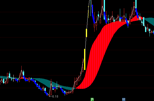 通达信重心红彩带主图波段买卖指标公式实例图解: