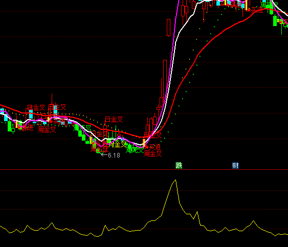蹦极线:(CLOSE-MA(CLOSE,13))/MA(CLOSE,13)*100,COLORYELLOW;