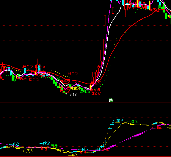 买入:=FILTER(MR,10);DRAWTEXT(减仓,HIGH*1.02,'←减仓'),COLORCYAN;