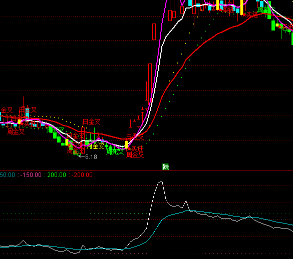 布林K值:EMA(布林极限,14),COLORCYAN;