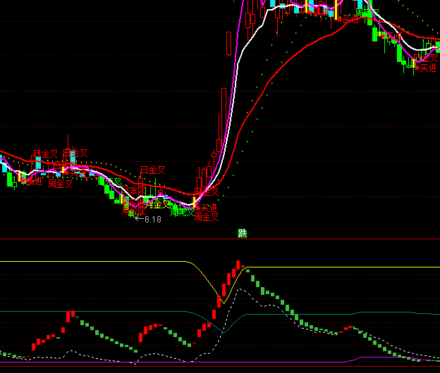 SK89:EMA((V-V21)/(V31-V21)*100,13),DOTLINE;