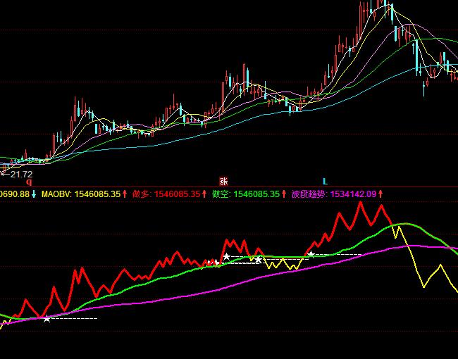 波段趋势 :MA(OBV,72),LINETHICK2,COLORff00ff;