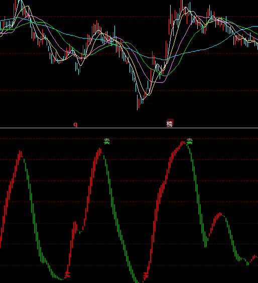 DRAWTEXT(CROSS(D,K) AND (D >75),85,'卖'),COLOR00FF00;